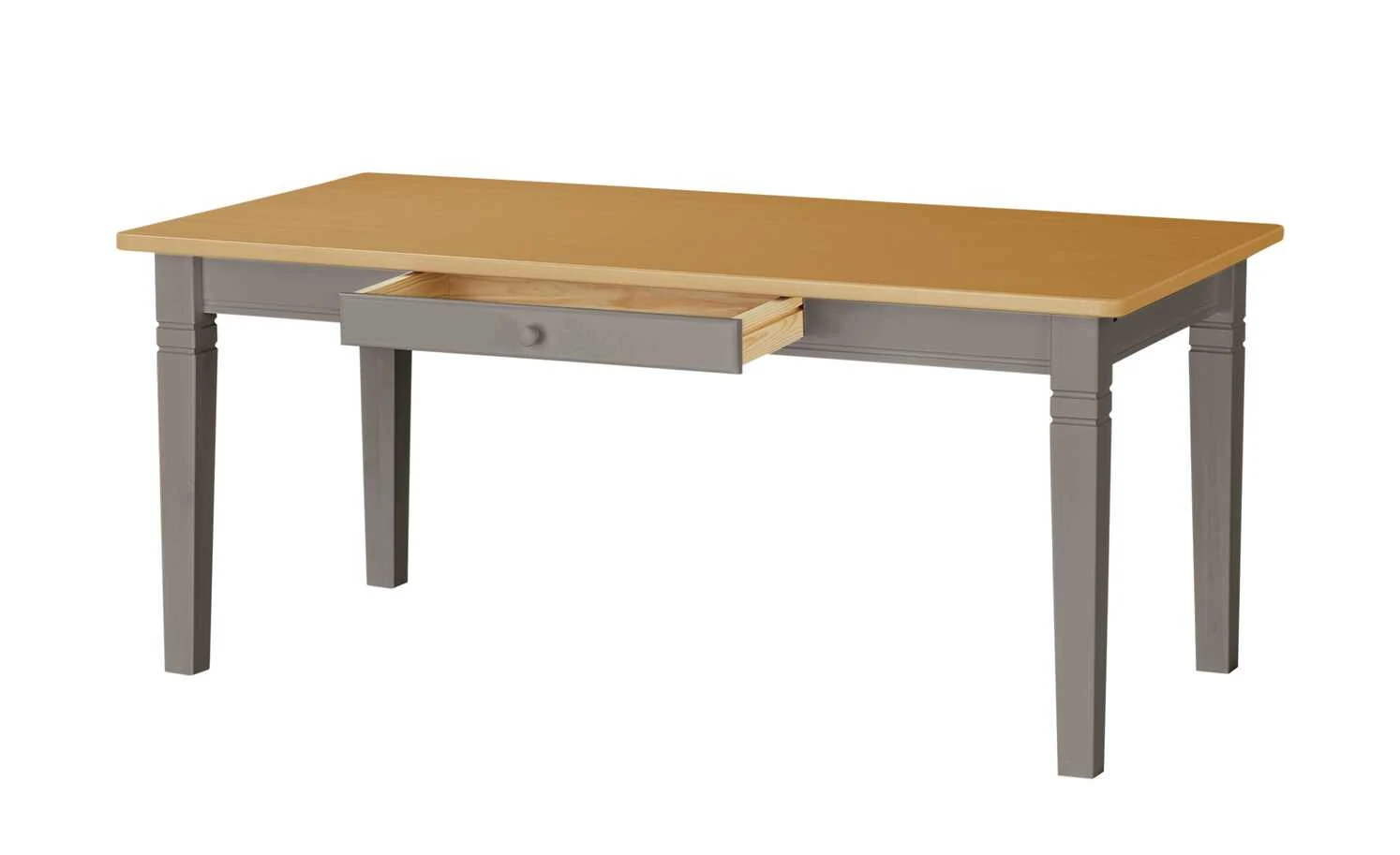 Wenn Sie den Landhausstil gerne mögen, dann ist der Esstisch Florian genau richtig. Der hochwertige Tisch besteht komplett aus massiver Kiefer. Die Holzoberfläche wurde gebeizt und lackiert. Am Gestell des Tisches befinden sich dekorative Ornamente, die Florian sein besonderes Aussehen geben. Entscheiden Sie zwischen einem rustikalen Design Ton in Ton, oder dem kontrastreichen Design mit farblich abgesetzter Tischplatte.