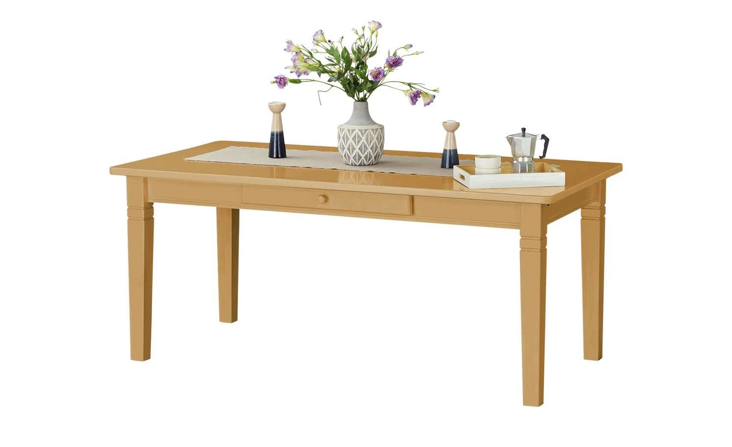 Wenn Sie den Landhausstil gerne mögen, dann ist der Esstisch Florian genau richtig. Der hochwertige Tisch besteht komplett aus massiver Kiefer. Die Holzoberfläche wurde gebeizt und lackiert. Am Gestell des Tisches befinden sich dekorative Ornamente, die Florian sein besonderes Aussehen geben. Entscheiden Sie zwischen einem rustikalen Design Ton in Ton, oder dem kontrastreichen Design mit farblich abgesetzter Tischplatte.