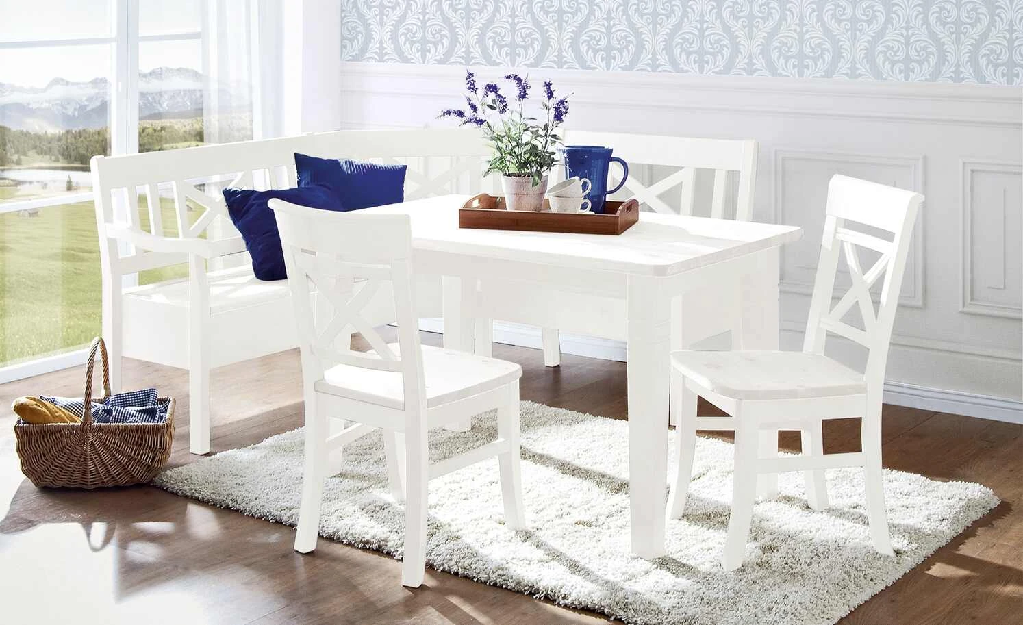 Wenn Sie den Landhausstil gerne mögen, dann ist der Esstisch Florian genau richtig. Der hochwertige Tisch besteht komplett aus massiver Kiefer. Die Holzoberfläche wurde gebeizt und lackiert. Am Gestell des Tisches befinden sich dekorative Ornamente, die Florian sein besonderes Aussehen geben. Passend dazu: Die einheitlich schöne weiße Farbe von Gestell und Tischplatte.