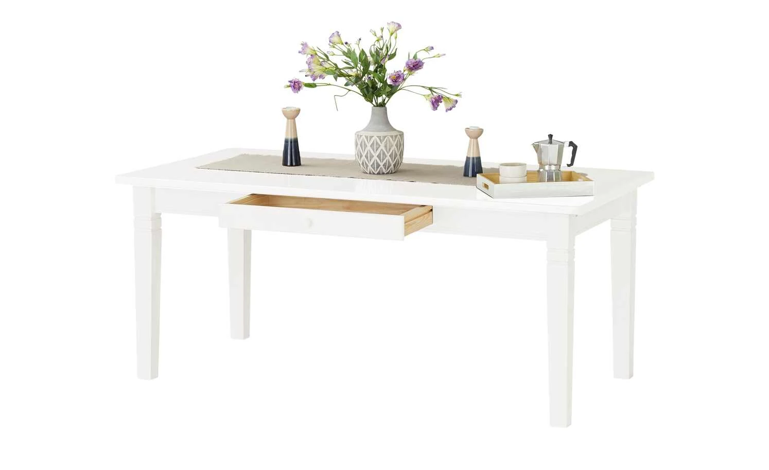 Wenn Sie den Landhausstil gerne mögen, dann ist der Esstisch Florian genau richtig. Der hochwertige Tisch besteht komplett aus massiver Kiefer. Die Holzoberfläche wurde gebeizt und lackiert. Am Gestell des Tisches befinden sich dekorative Ornamente, die Florian sein besonderes Aussehen geben. Entscheiden Sie zwischen einem rustikalen Design Ton in Ton, oder dem kontrastreichen Design mit farblich abgesetzter Tischplatte.