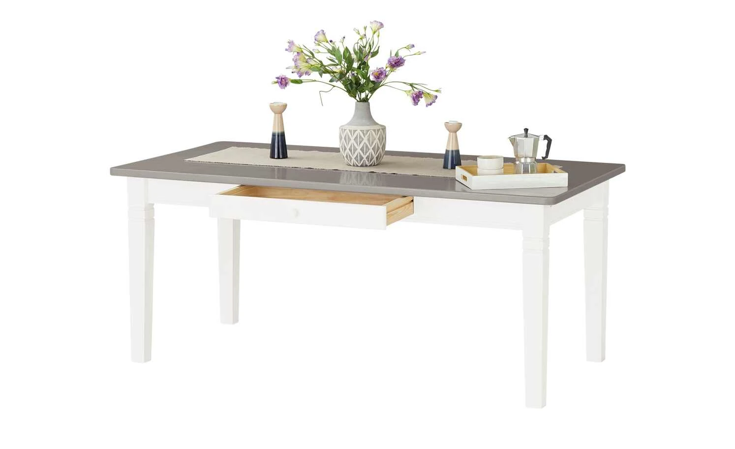 maison bleue Esstisch massiv Florian | Weiß / Grau ca. 180×90 cm