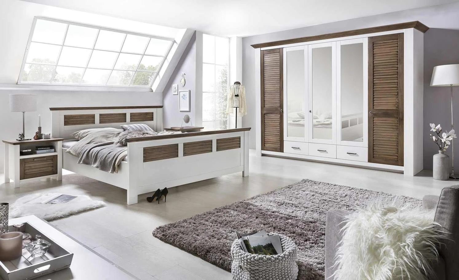 - Farbe / Dekor: Pinie Weiß / Pinie Terra (Dunkelbraun)
