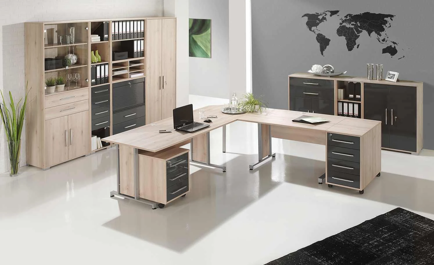 Success sorgt mit der Verbindung von zeitlosem Design und durchdachter Funktionalität für ein harmonisches Zusammenspiel in jedem Büro. Dank der innovativen ABS-Kanten, die besonders strapazierfähig und abriebfest sind, überzeugt Success mit langlebigen Oberflächen. Die Metallfüße sind passend für die Schreibtischplatten aus dieser stilvollen Serie.