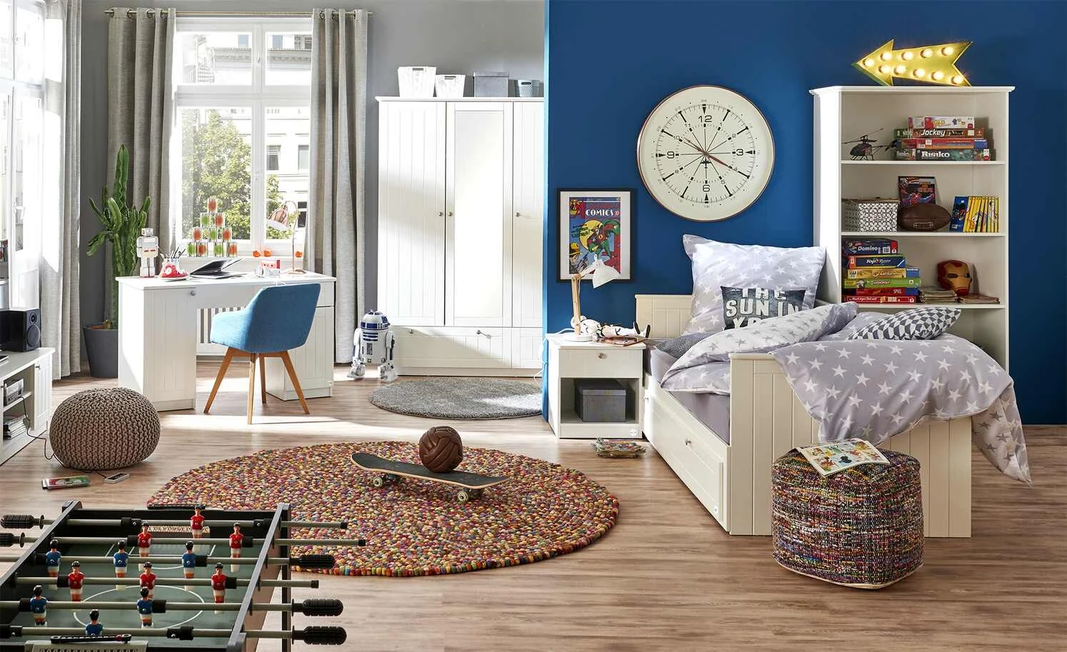 Die Nachtkommode Suna ergänzt das Jugendbett der gleichnamigen Serie. Alle Möbel der Serie bestehen aus hochwertigen Materialien und sind gut verarbeitet. Die Nachtkommode verfügt über eine Schublade und ein großes offenes Fach. Dank der Soft-Close-Ausstattung und den integrierten Dämpfer schließt die Schublade sanft und leise. Die gesamte Kommode ist in Weiß gehalten und im Landhausstil verziert.