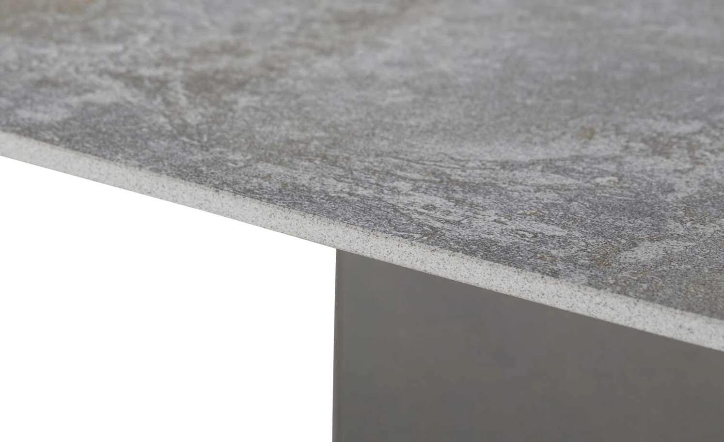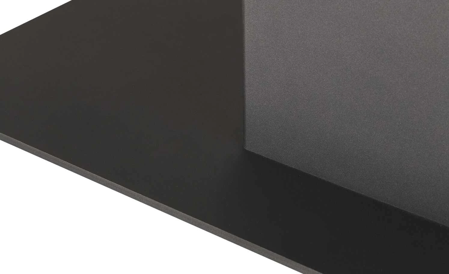 - Mehr zum Material: Bodenplatte und Säule fein strukturiert in Anthrazit, Tischplatte aus Dekton