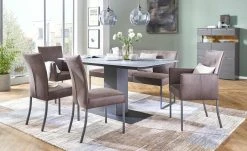 - Mehr zum Material: Bodenplatte und Säule fein strukturiert in Anthrazit, Tischplatte aus Dekton