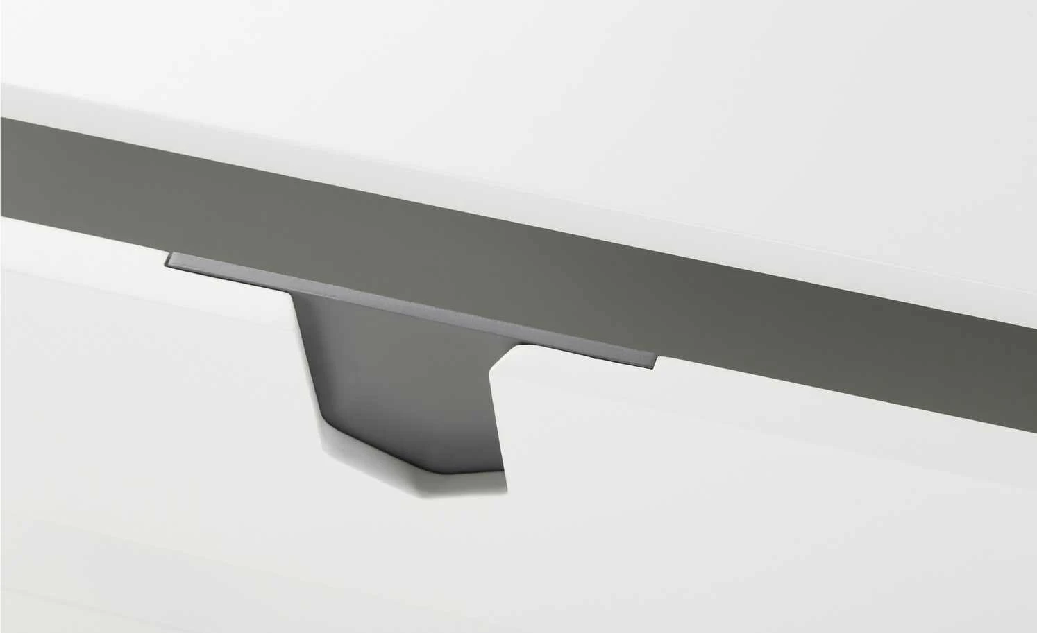 - Mehr zum Material: Frontabsetzung: Holzwerkstoff Grau beschichtet