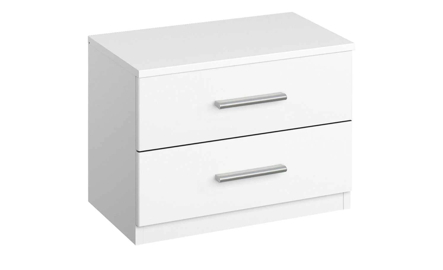 Das Bettgestell Coventry lässt sich wunderbar mit dieser gleichnamigen Nachtkommode ergänzen. Sie ist passend zum Bett in Alpinweiß designt. Coventry ist mit zwei Schubladen ausgestattet und bietet so praktischen Stauraum.