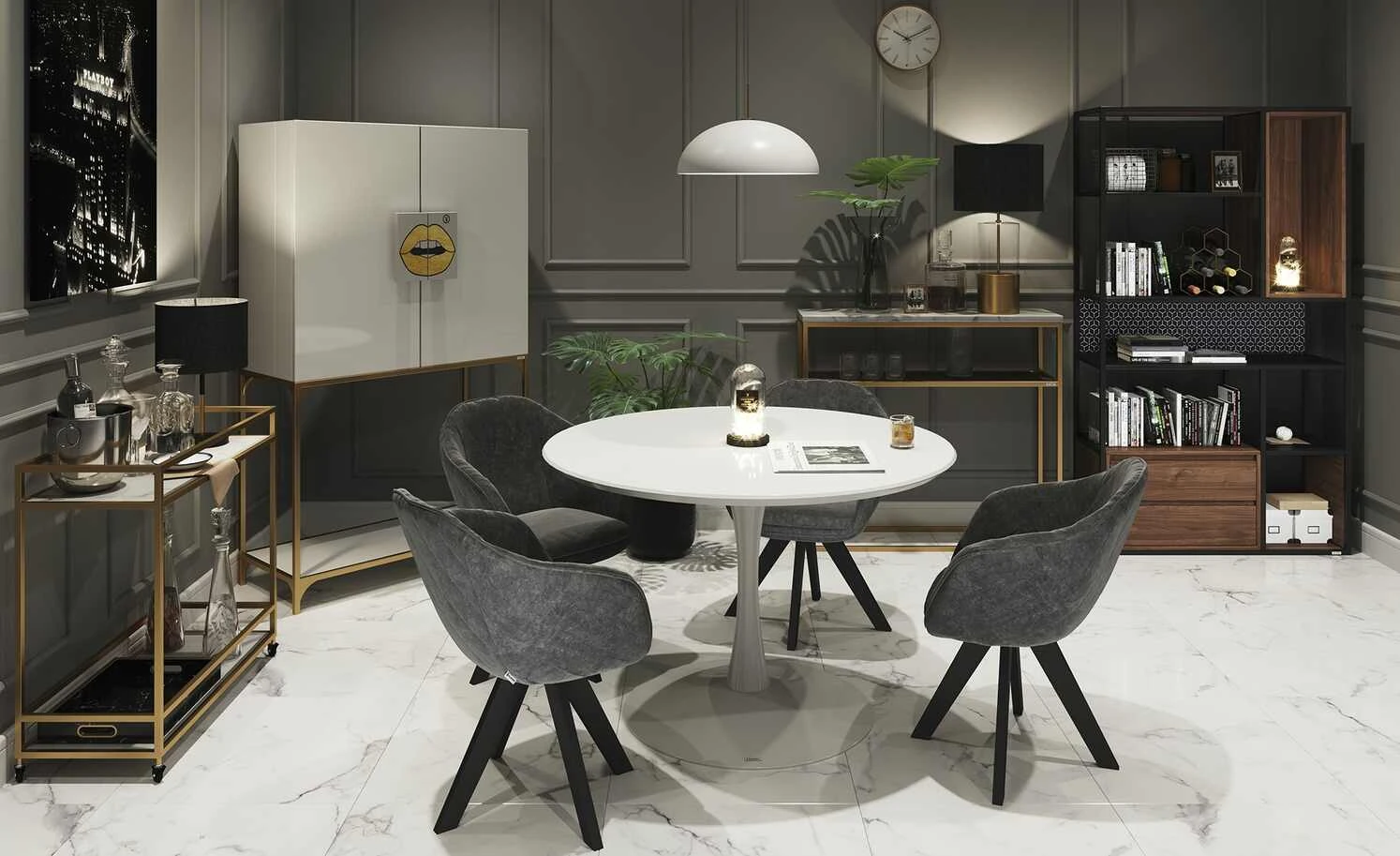 - Maße der Tischplatte (LxB): Ø 100 cm