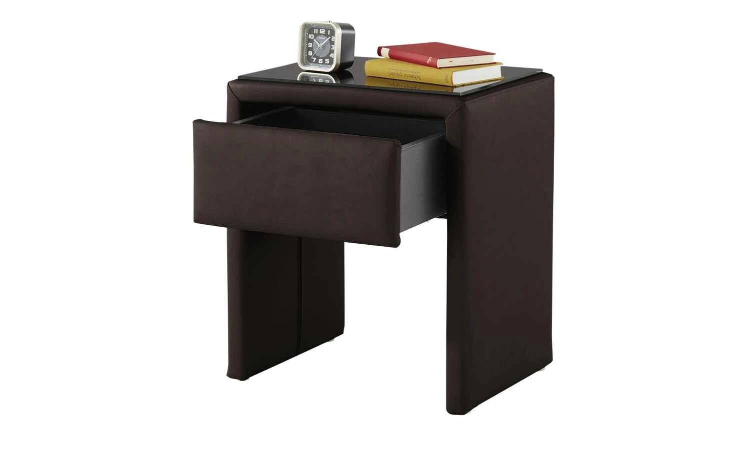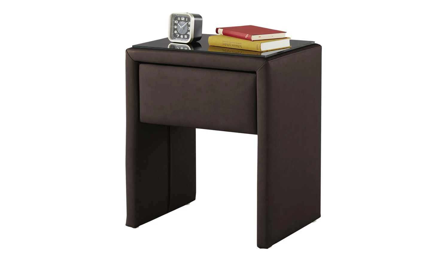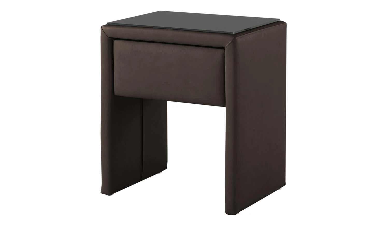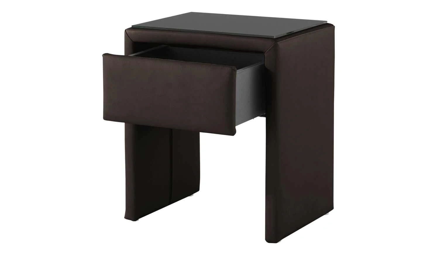 RUF-Betten stehen für höchsten Komfort bei stilprägendem Design: Und das schon seit 1926. Durch einzigartige Design-Konzepte verspricht jedes RUF-Möbel unvergleichlichen Komfort der keine Wünsche offenlässt. Beim Nachttisch Tiso werden schwarzes Glas und Kunstleder stilsicher miteinander kombiniert. Der attraktive Kufentisch überzeugt durch griffloses Design und eine hochwertige Verarbeitung in RUF-Markenqualität. Verstauen Sie Ihre Lesebrille oder Abendlektüre im blickdichten Schubfach. Dieses besitzt einen praktischen Selbsteinzug. Wählen Sie aus einer zeitlosen Farbpalette und komplettieren Sie Ihr Schlafzimmer mit dem Nachttisch Tiso.