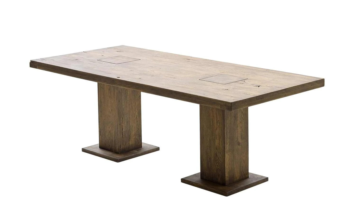 - Mehr zur Ausführung: Jeder Tisch ein Unikat. Risse, Druckstellen, Äste, Löcher und Farbunterschiede sind gewollt., Sichtbare Säulenabsetzung in der Tischplatte
