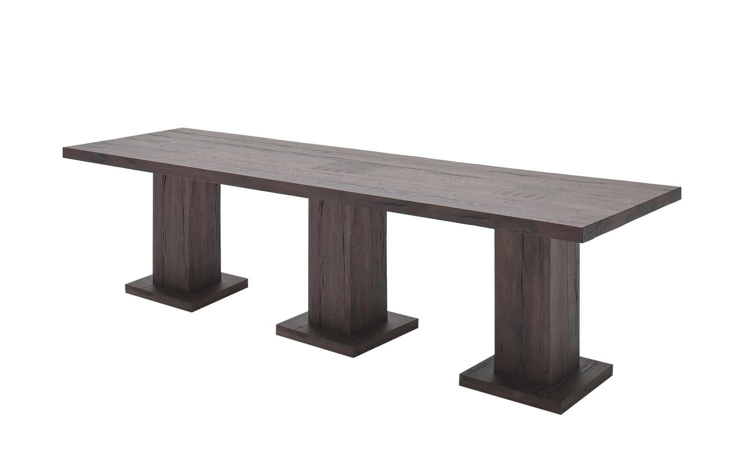 - Mehr zur Ausführung: Jeder Tisch ein Unikat. Risse, Druckstellen, Äste, Löcher und Farbunterschiede sind gewollt., Sichtbare Säulenabsetzung in der Tischplatte