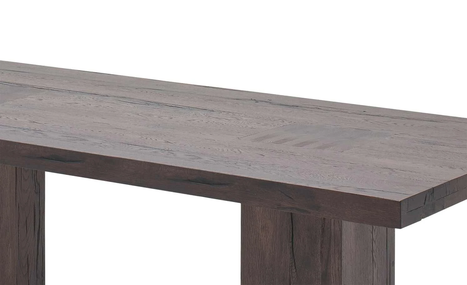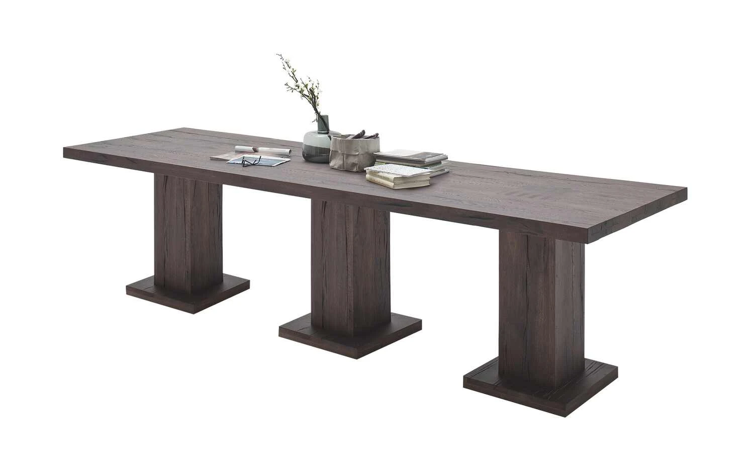 - Mehr zur Ausführung: Jeder Tisch ein Unikat. Risse, Druckstellen, Äste, Löcher und Farbunterschiede sind gewollt., Sichtbare Säulenabsetzung in der Tischplatte
