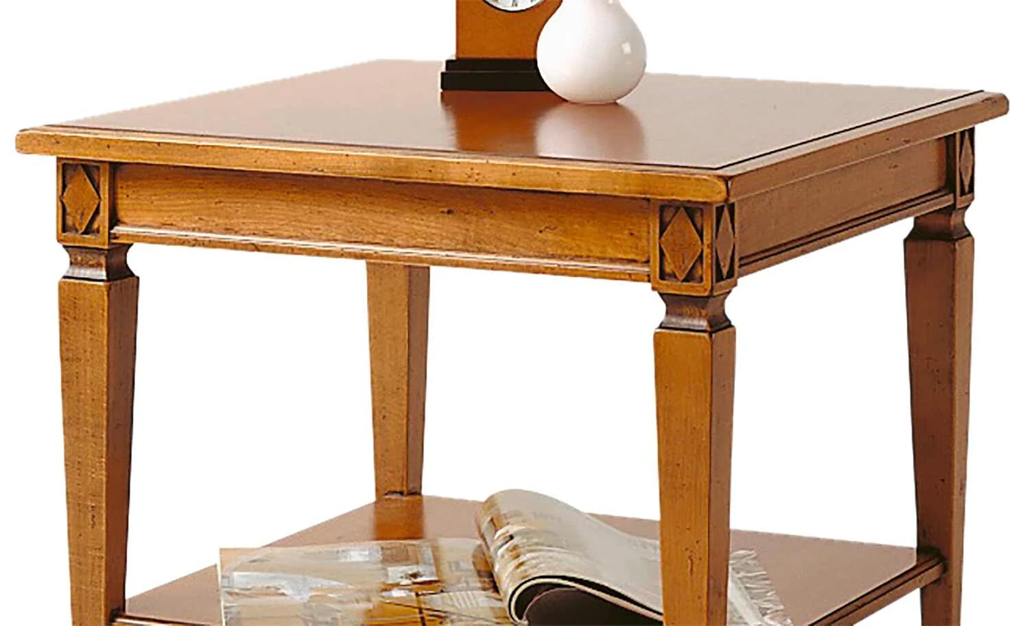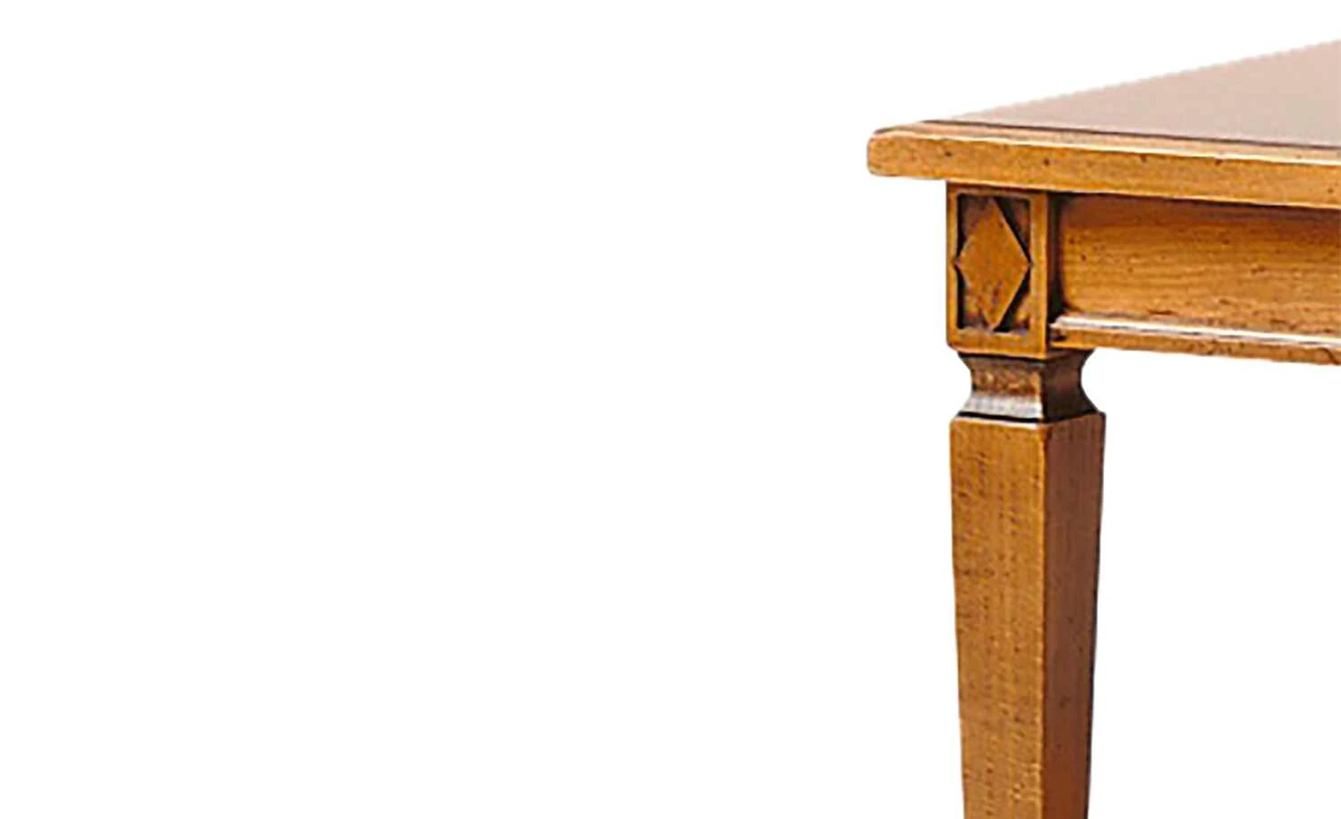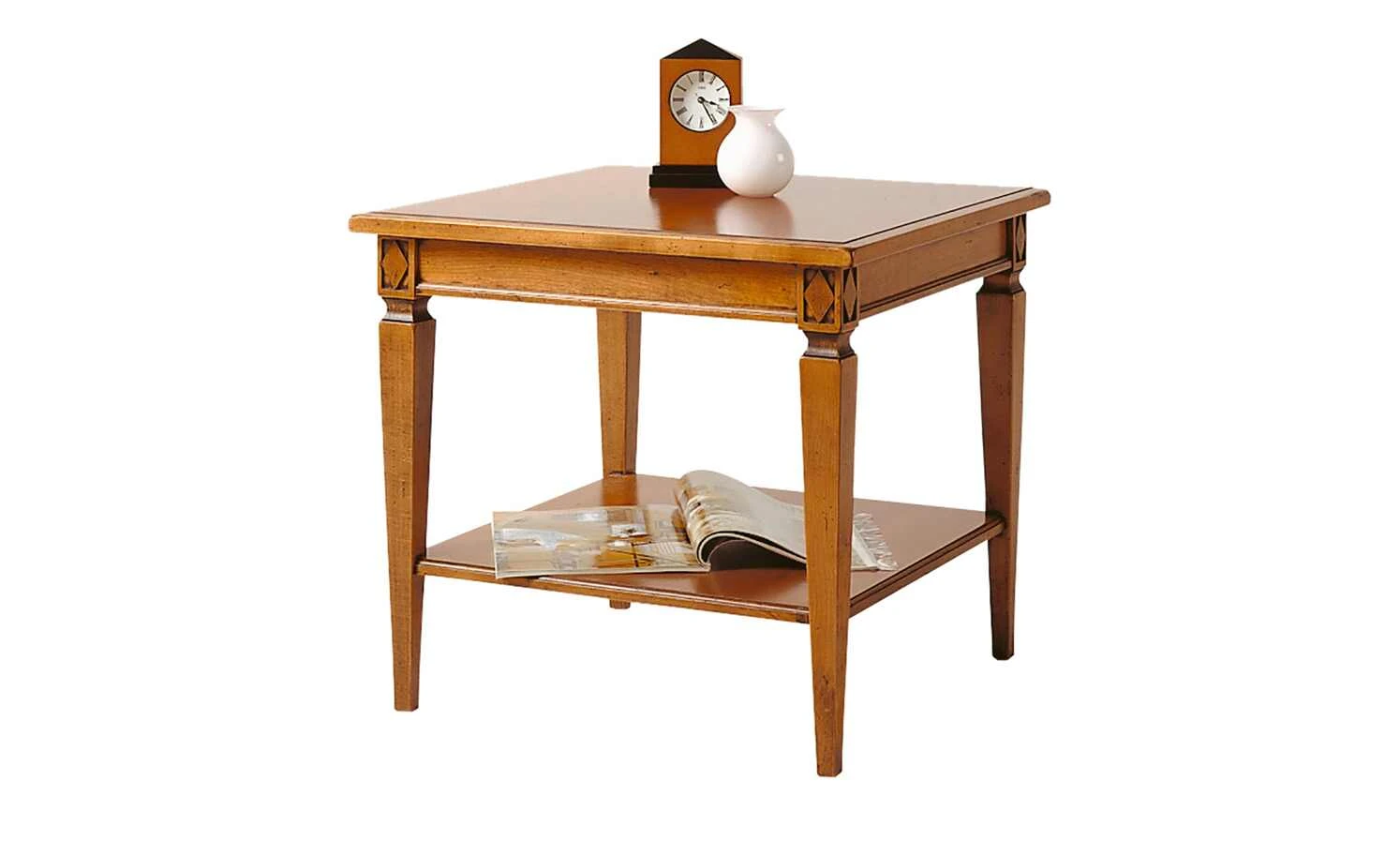 - Mehr zum Material: Platten und Zarge aus Kirschbaumholz furniert gebeizt und lackiert, Beine aus Buche massiv gebeizt und lackiert