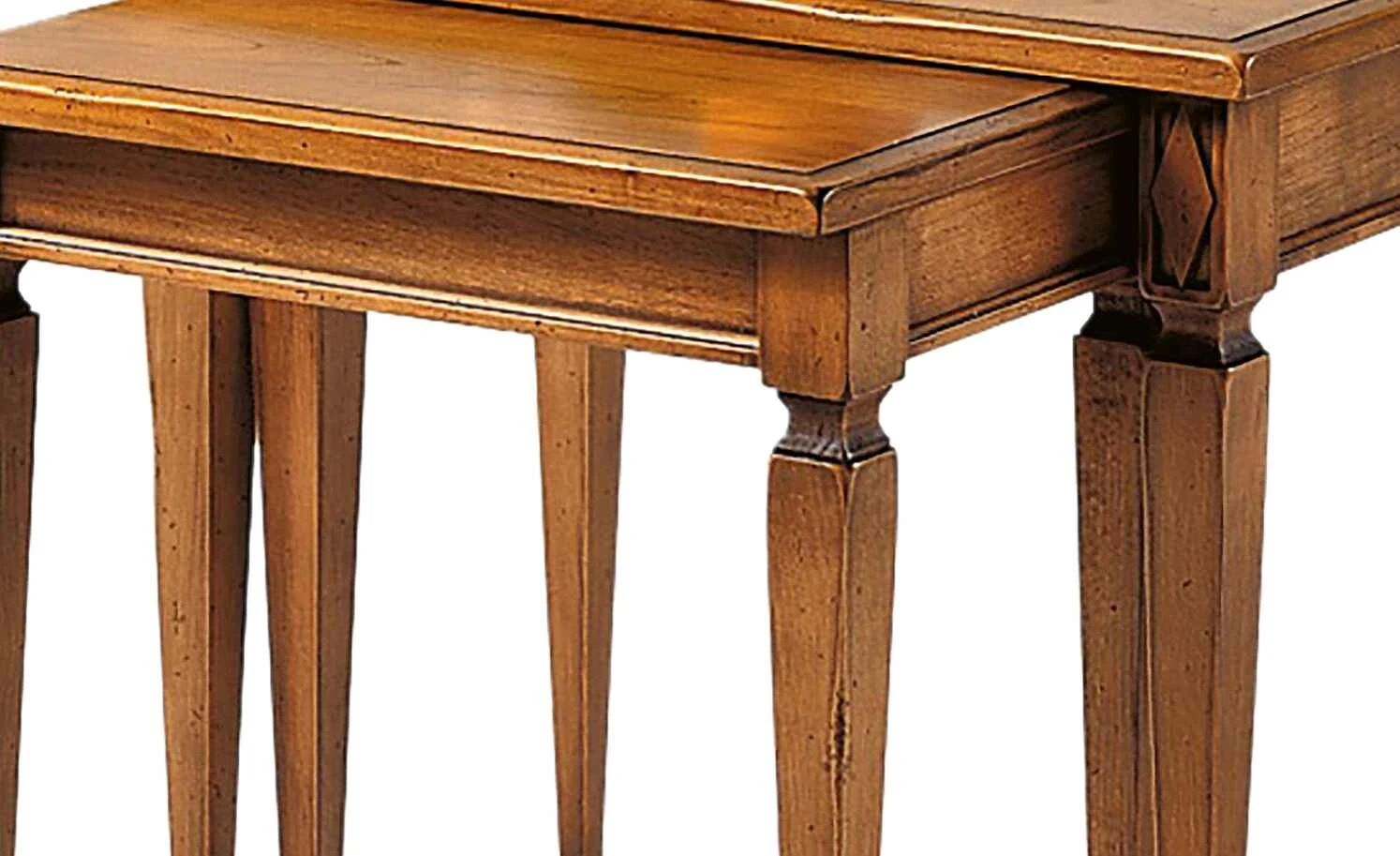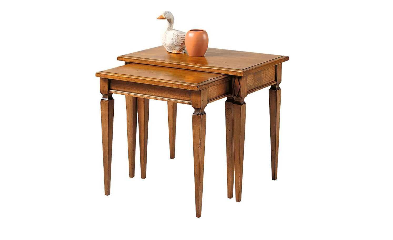 - Mehr zum Material: Platten und Zargen aus Kirschbaumholz furniert gebeizt und lackiert, Beine aus Buche massiv gebeizt und lackiert