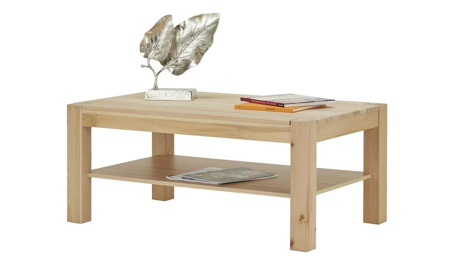 Der Couchtisch Oslo wirkt durch das verarbeitete Kernbuchenholz natürlich und freundlich. Dadurch lässt er sich in zahlreiche Einrichtungsstile integrieren und kombinieren. Die 105 x 65 Zentimeter große Tischplatte wurde geölt und zeigt das Kernbuchenholz von seiner besten Seite. Praktisch: Als zusätzliche Ablagemöglichkeit dient die Ablageplatte direkt unter der Tischplatte. Hier finden Zeitschriften und Co. Platz.