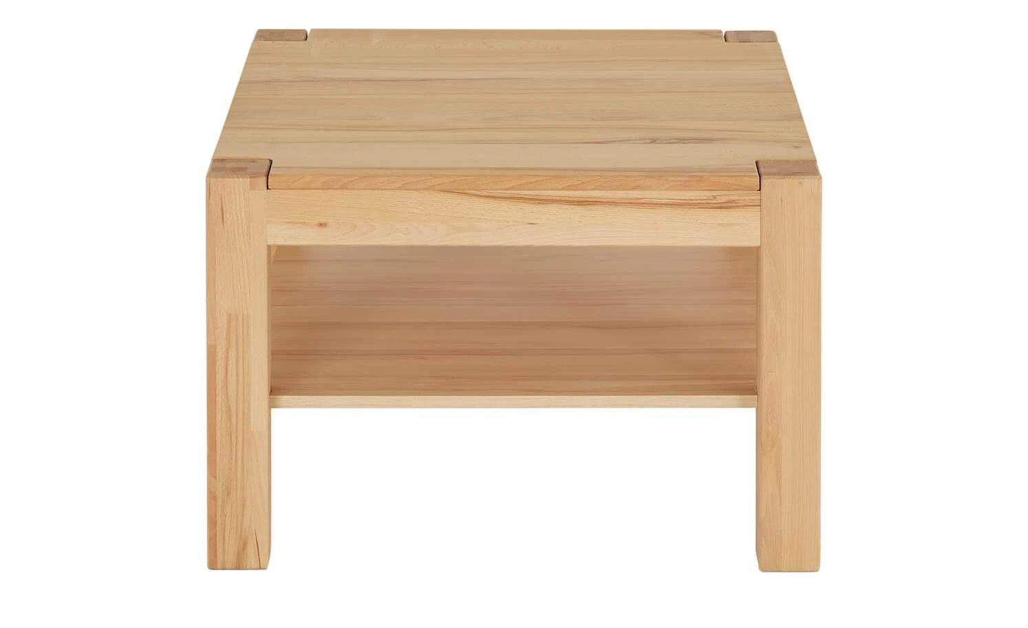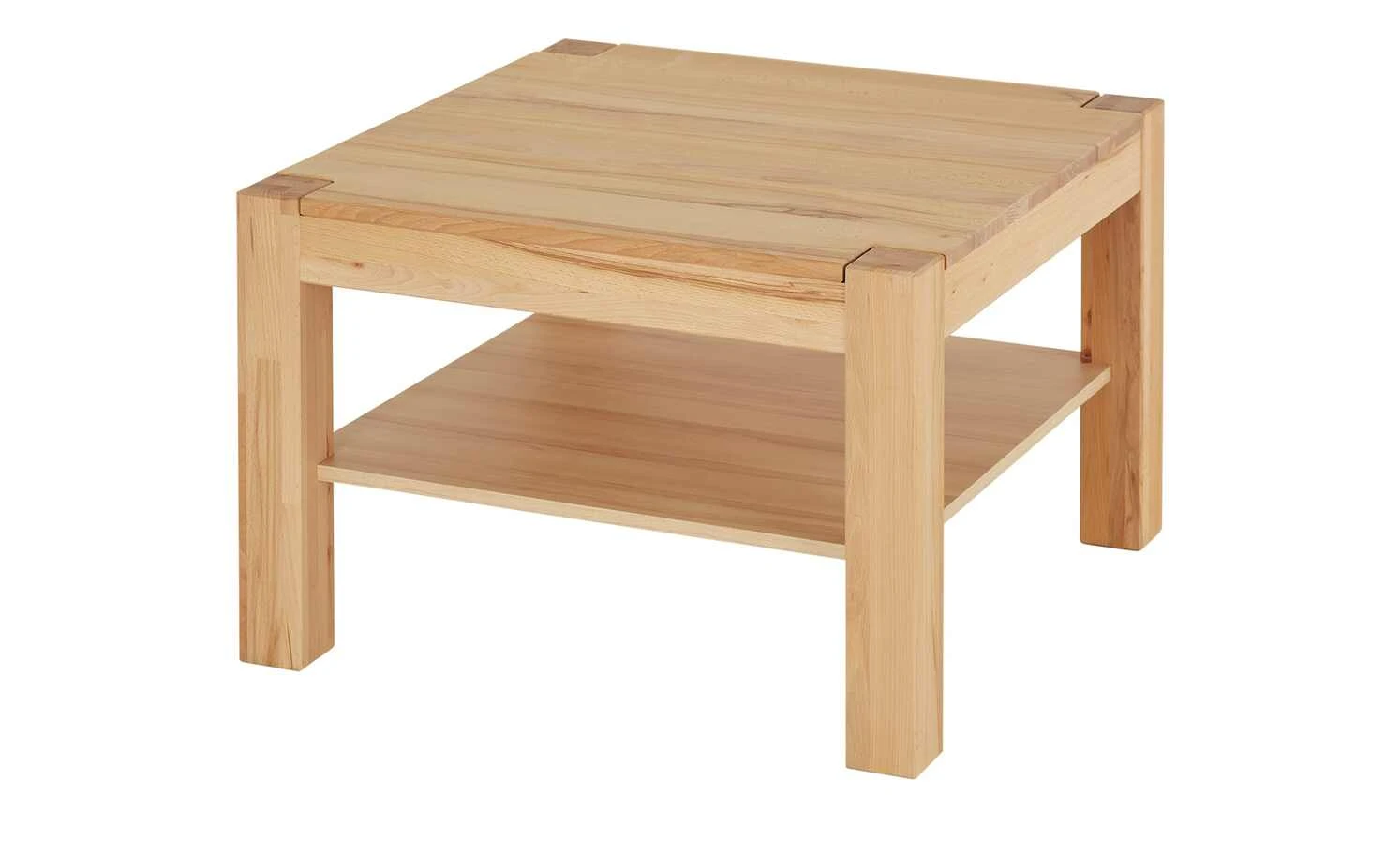Der Couchtisch Oslo wirkt durch das verarbeitete Kernbuchenholz natürlich und freundlich. Dadurch lässt er sich in zahlreiche Einrichtungsstile integrieren und kombinieren. Die 70 x 70 Zentimeter große Tischplatte wurde geölt und zeigt das Kernbuchenholz von seiner besten Seite. Praktisch: Als zusätzliche Ablagemöglichkeit dient die Ablageplatte direkt unter der Tischplatte. Hier finden Zeitschriften und Co. Platz.
