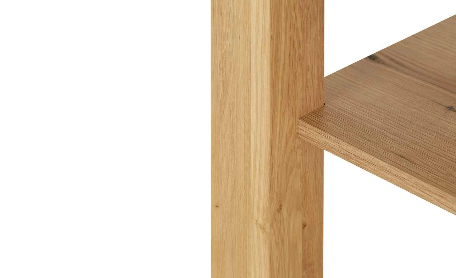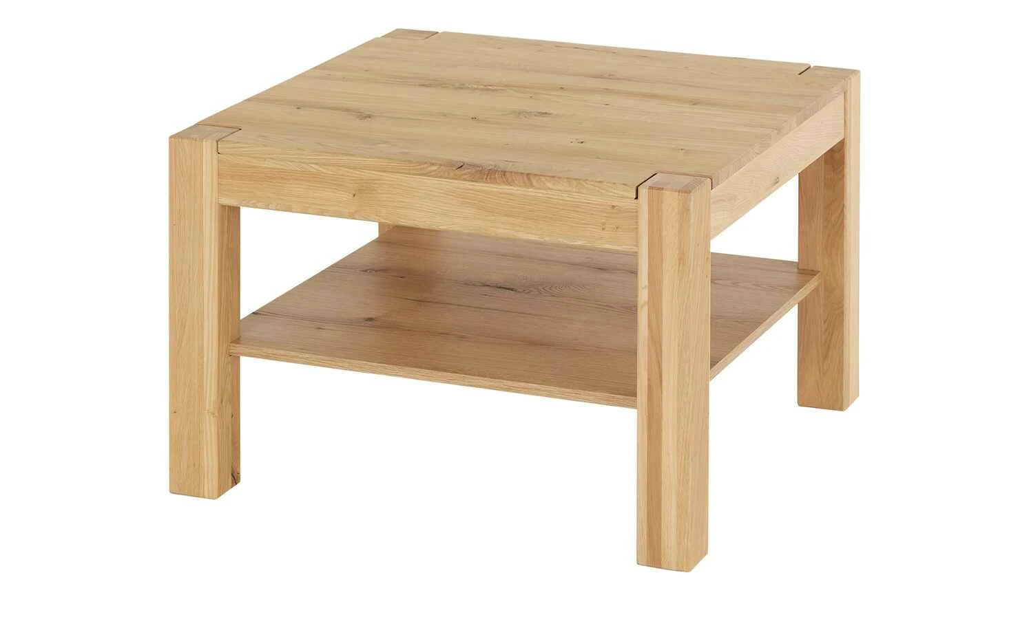 Der Couchtisch Oslo wirkt durch das verarbeitete Wildeichenholz natürlich und freundlich. Dadurch lässt er sich in zahlreiche Einrichtungsstile integrieren und kombinieren. Die 70 x 70 Zentimeter große Tischplatte wurde geölt und zeigt das Wildeichenholz von seiner besten Seite. Praktisch: Als zusätzliche Ablagemöglichkeit dient die Ablageplatte direkt unter der Tischplatte. Hier finden Zeitschriften und Co. Platz.
