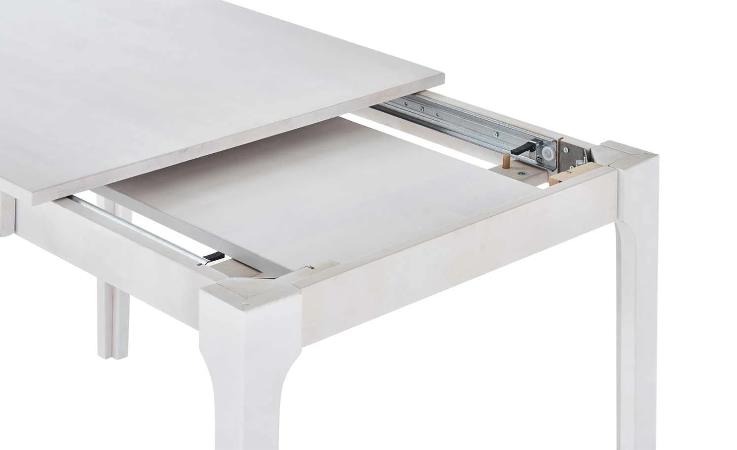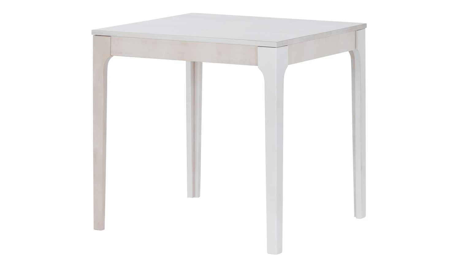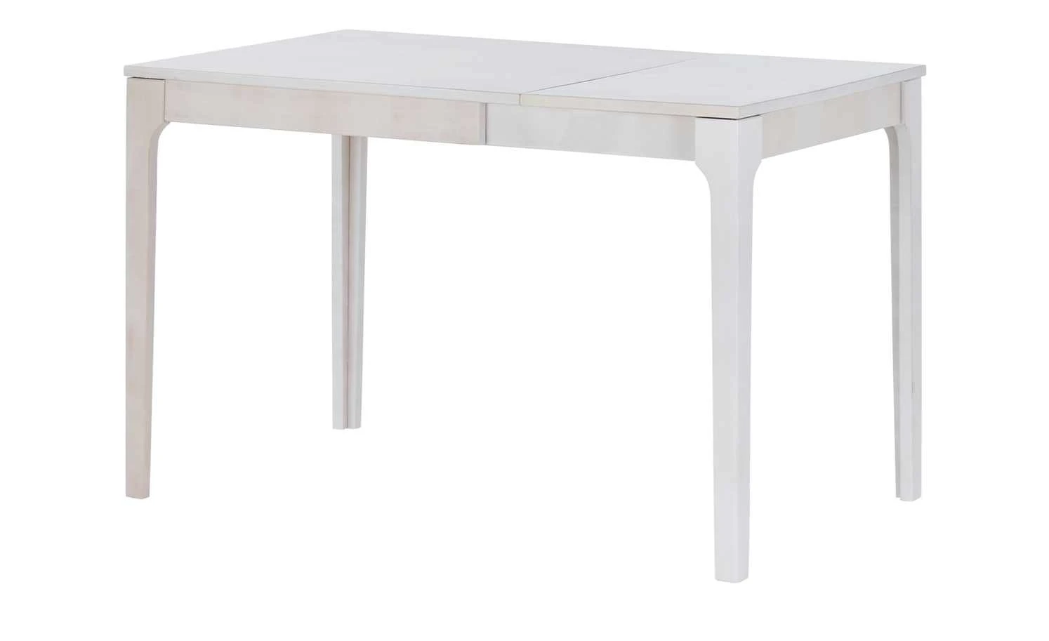 Der Esstisch Magnus ist perfekt für kleine Essecken oder Küchen. Er benötigt nicht viel Stellfläche, kann bei Bedarf aber ganz leicht vergrößert werden. Im ausgezogenen Zustand ist er 120 cm lang und bietet dann Platz für sechs Personen. Nicht ausgezogen sind es vier Personen. Tischplatte und Gestell sind aus massiver Kernbuche gefertigt und weiß lackiert, wobei die holztypische Maserung aber dennoch leicht zu sehen ist. Das edle Kernbuchenholz hat eine langlebige und stabile Qualität.