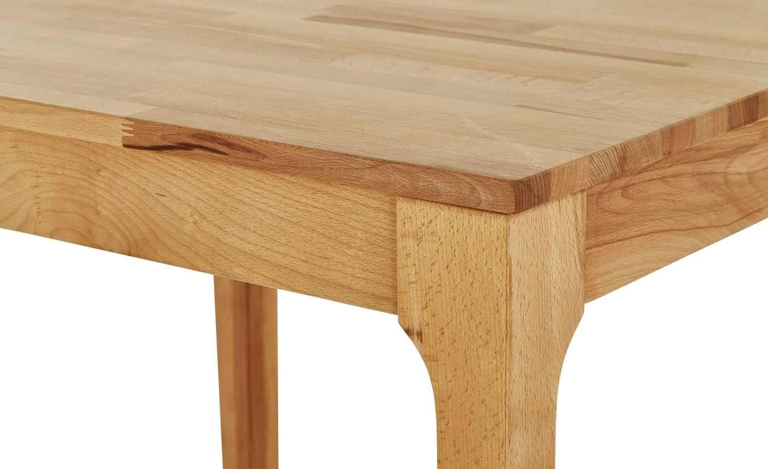 Der Esstisch Magnus ist perfekt für kleine Essecken oder Küchen. Er benötigt nicht viel Stellfläche, kann bei Bedarf aber ganz leicht vergrößert werden. Im ausgezogenen Zustand ist er 120 cm lang und bietet dann Platz für sechs Personen. Nicht ausgezogen sind es vier Personen. Tischplatte und Gestell sind aus massiver Kernbuche gefertigt und zum Schutz mit einem Öl behandelt worden. Das edle Kernbuchenholz hat eine langlebige und stabile Qualität.