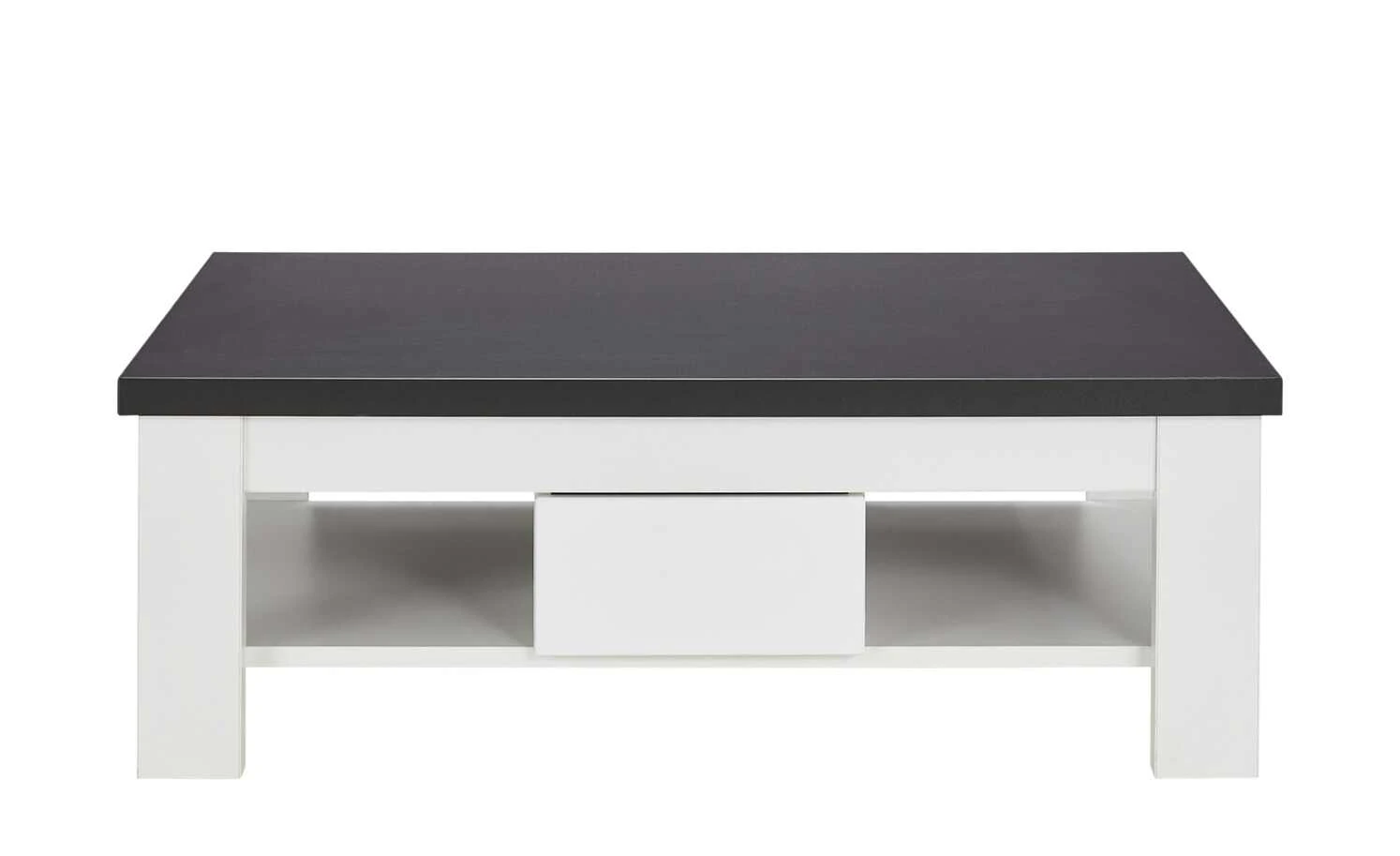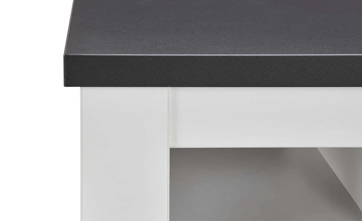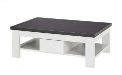 Titan ist ein moderner Couchtisch im Kontrastdesign von der Marke uno. Er passt perfekt zur gleichnamigen Wohnzimmerserie. Die rechteckige Tischplatte in Graphitgrau wird vom weißen Gestell abgesetzt. Tischplatte, Gestell und Front sind beschichtet, was sie besonders widerstandsfähig macht. Neben der Tischplatte bietet Titan eine Schublade und seitlich davon jeweils eine Ablage.