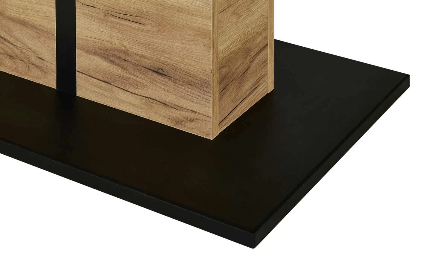 - Mehr zum Material: Säulengestell mit Metallapplikationen in Schwarz , Bodenplatte: Holzwerkstoff beschichtet in Schwarz