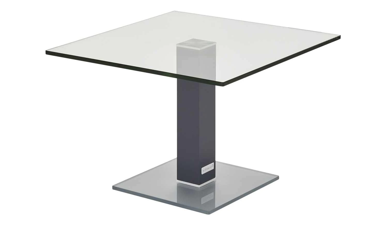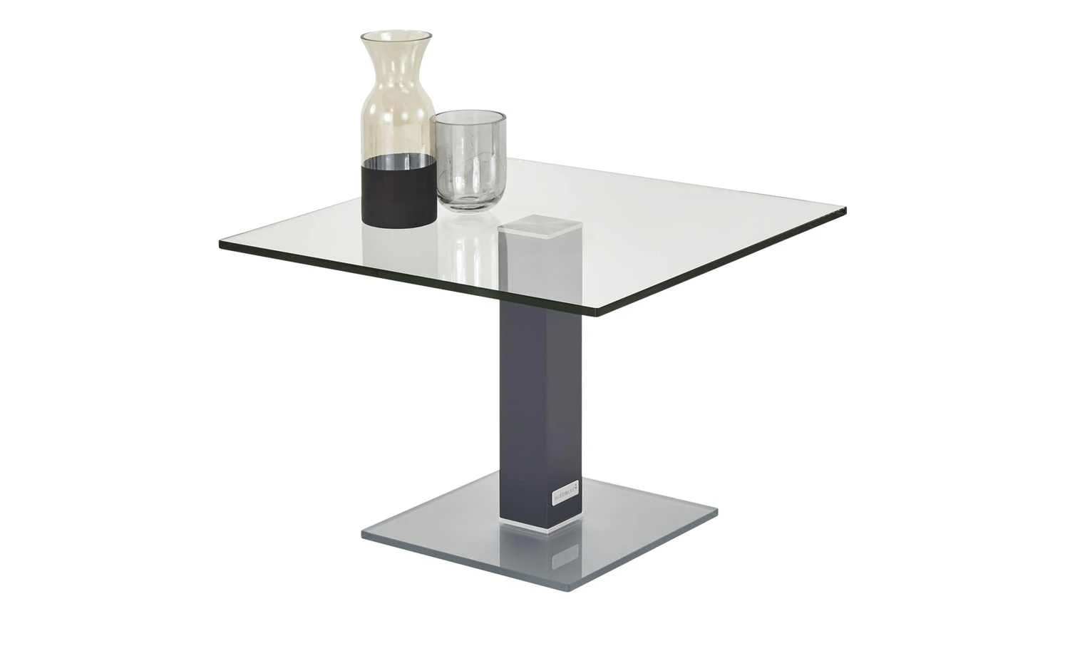 Neben der Couch, dem Sessel oder im Wintergarten – der Beistelltisch Quatro von Wohnwert ist praktisch und hat ein zeitlos elegantes Design. Tisch- und Bodenplatte sind aus stabilem Glas gefertigt. Für die Tischplatte ist ein dezentes Klarglas verwendet worden; die Bodenplatte setzt sich in Weißglas ab. Das Gestell in Säulenform ist aus Metall gefertigt und sorgt für einen sicheren Stand des Tisches. Es ist graphitgrau lackiert und hat ein attraktives mattes Finish.