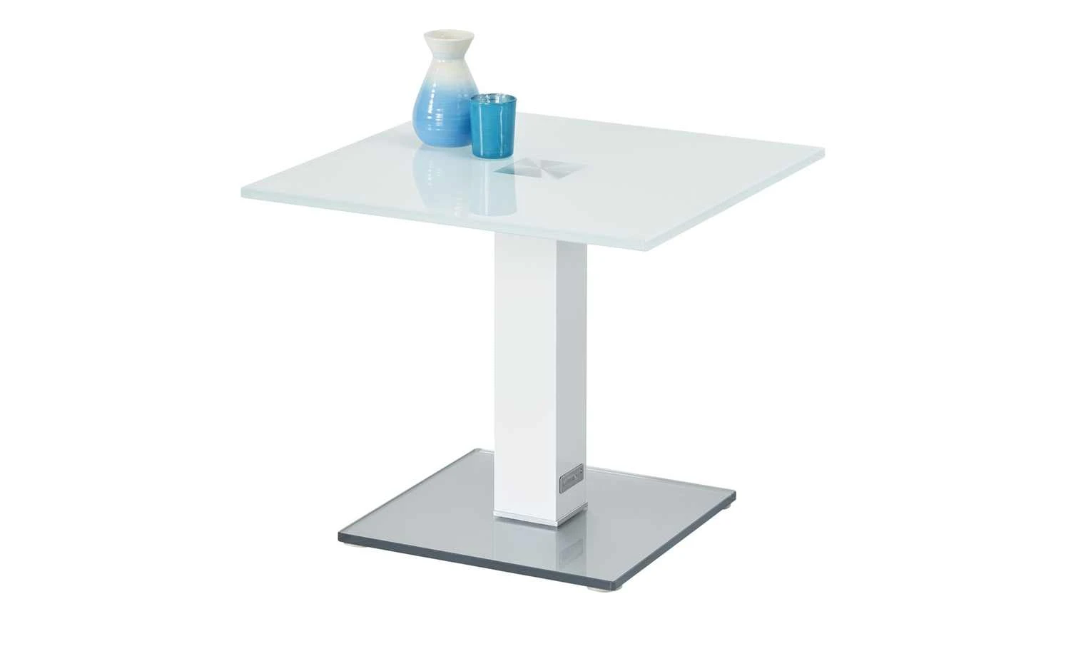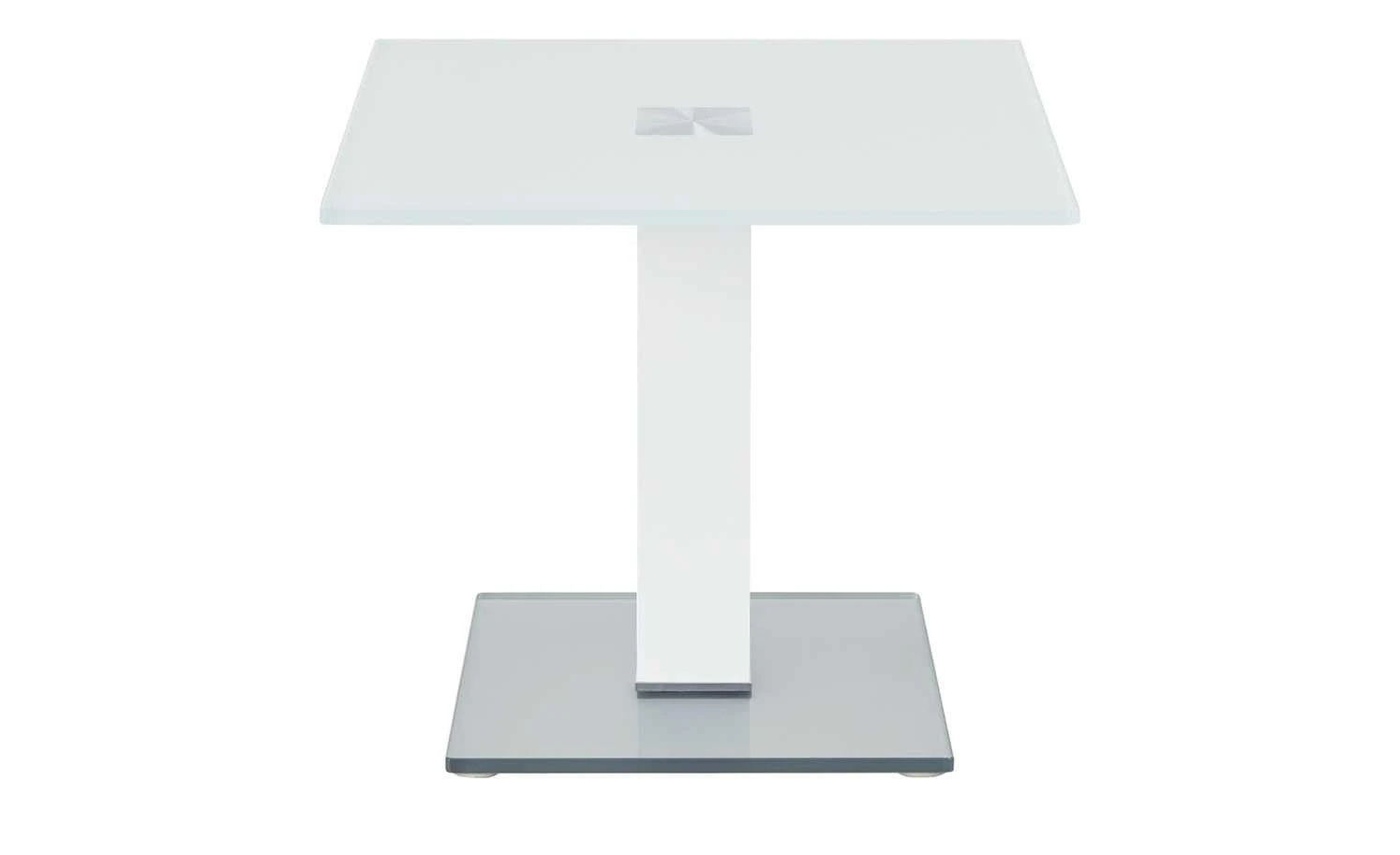Neben der Couch, dem Sessel oder im Wintergarten – der Beistelltisch Quatro von Wohnwert ist praktisch und hat ein zeitlos elegantes Design. Tisch- und Bodenplatte sind aus stabilem Weißglas gefertigt. Das Gestell in Säulenform ist aus Metall gefertigt und sorgt für einen sicheren Stand des Tisches. Es ist in signalweiß lackiert.