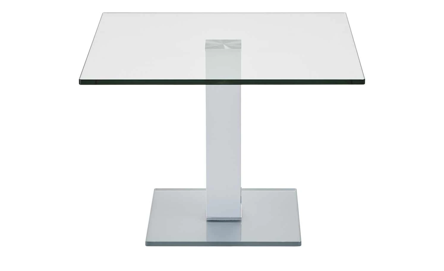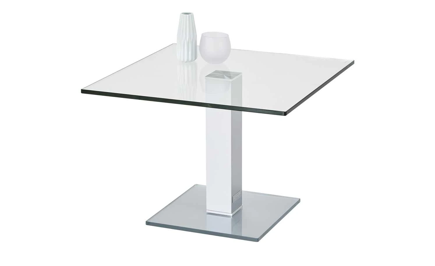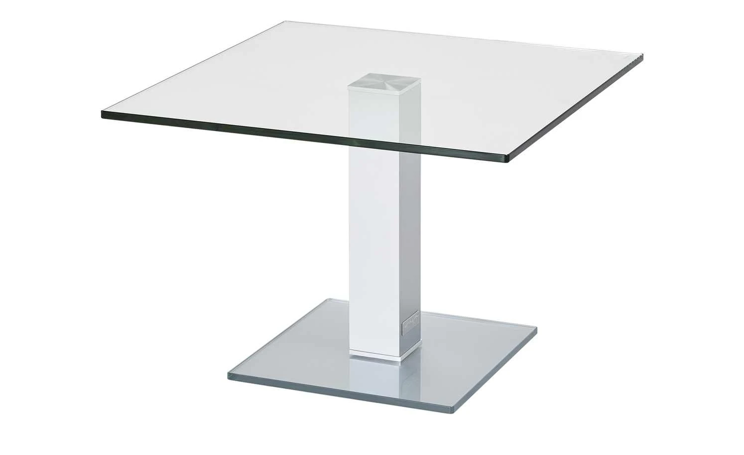 Neben der Couch, dem Sessel oder im Wintergarten – der Beistelltisch Quatro von Wohnwert ist praktisch und hat ein zeitlos elegantes Design. Tisch- und Bodenplatte sind aus stabilem Glas gefertigt. Bei der Tischplatte ist es klar, bei der Bodenplatte hat es eine weiße Optik. Das Gestell in Säulenform setzt sich Weißaluminium (Nachbildung) ab. Es ist aus Metall gefertigt und sorgt für einen sicheren Stand des Tisches.