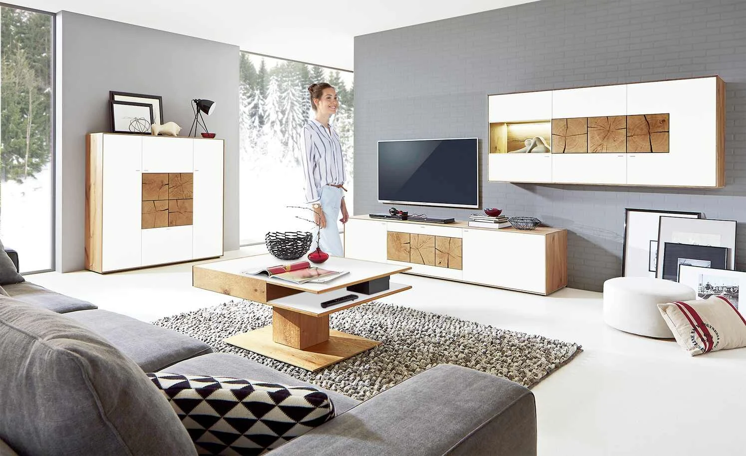 - Material Tischplatte: Massivholz, Holzwerkstoff mit Glas