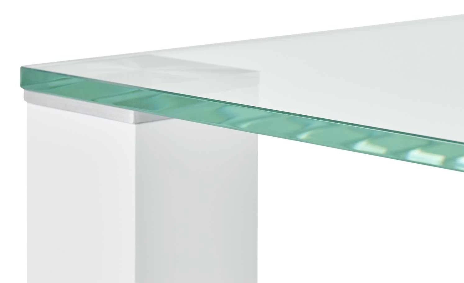- Mehr zum Material: Tischplatte und Ablegeplatte: Weißglas