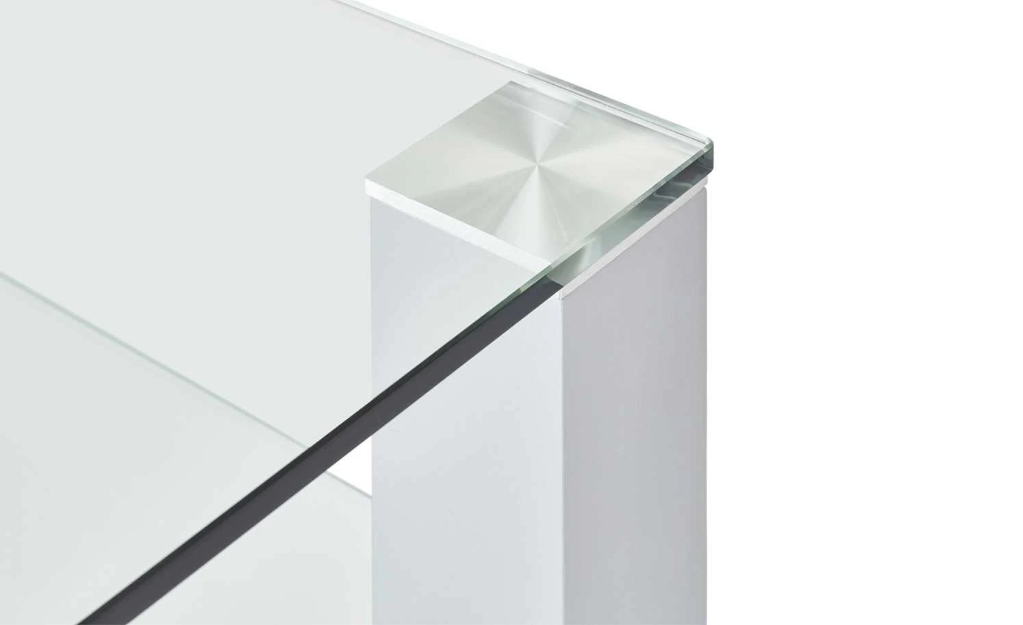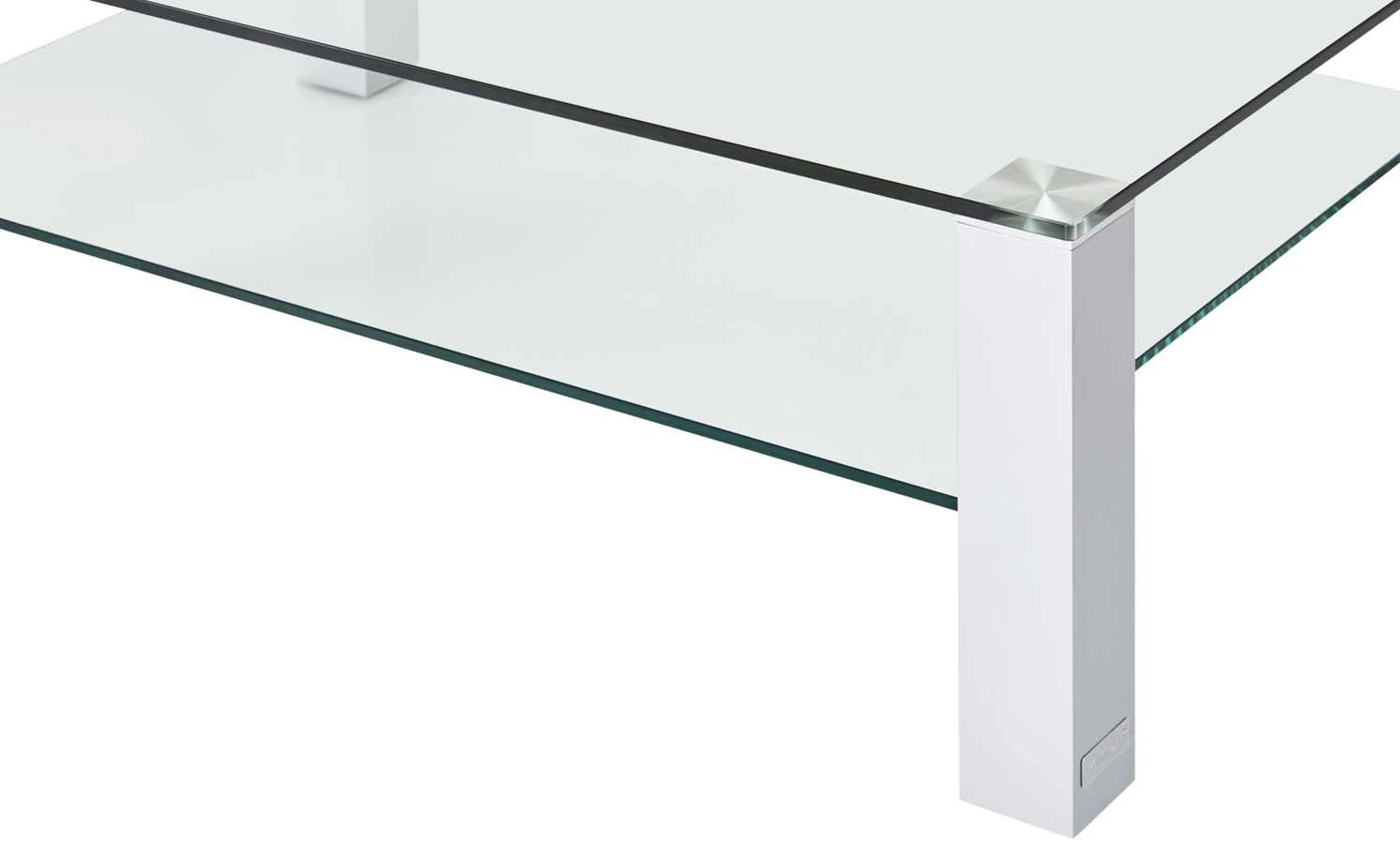 Stil, Qualität und Funktionalität vereint der Couchtisch Quatro von Wohnwert. Die rechteckige Tischplatte aus edlem Klarglas wird von vier stabilen Tischbeinen getragen. Alle vier sind in Weißaluminium (Nachbildung) designt und haben ein modernes mattes Oberflächenfinish. Quatro kommt mit einer zusätzlichen Ablage zu Ihnen. Sie ist ebenfalls aus stabilem Klarglas gefertigt. Praktisch: Der Tisch verfügt über Rollen. Sie sind in den Tischbeinen integriert und somit versteckt. So können Sie Quatro bei Bedarf einfach bewegen.