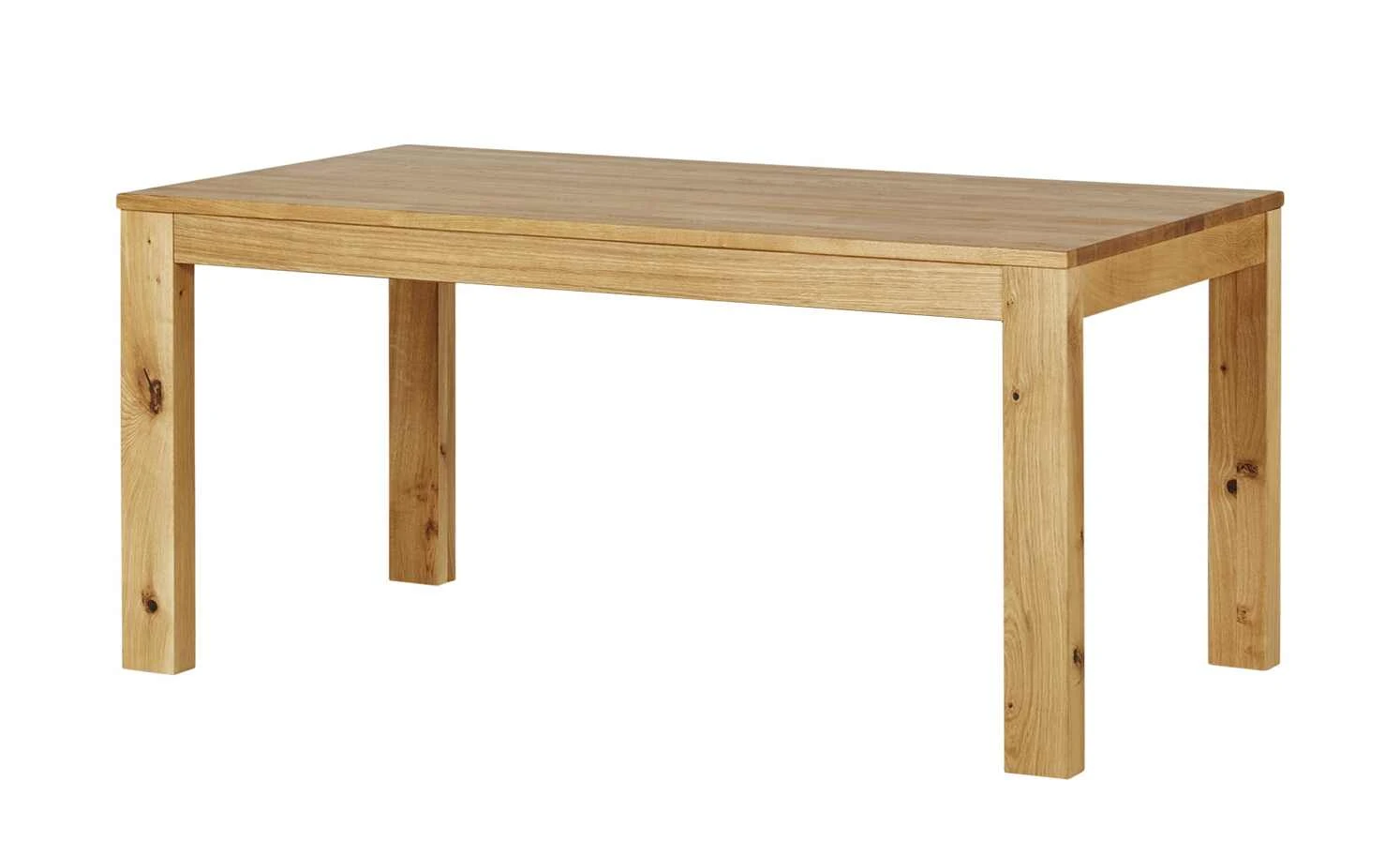 Aus hochwertiger Wildeiche ist der Esstisch Einsteiger von Wohnwert gefertigt. Die Oberfläche des Tisches ist geölt. Das dient einerseits dem Schutz des Holzes und bringt andererseits die Maserung zur Geltung. Diese macht nämlich den natürlichen Charme des Tisches aus. Dank des sogenannten Gestellauszuges lässt sich Einsteiger mit wenigen Handgriffen vergrößern. So haben Sie bei Bedarf Platz für bis zu acht Personen.