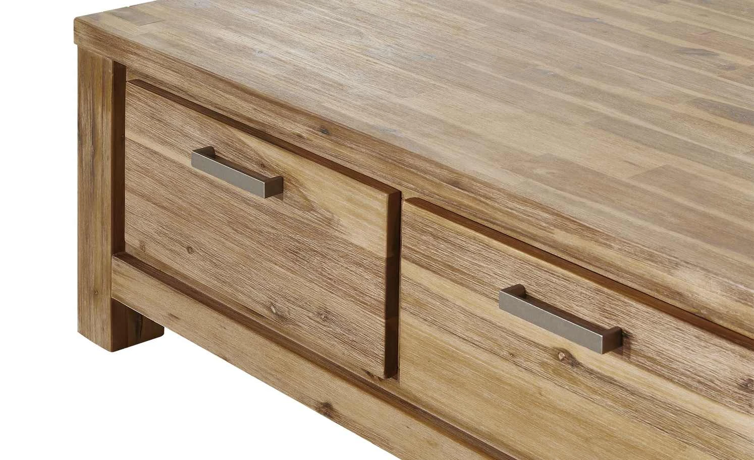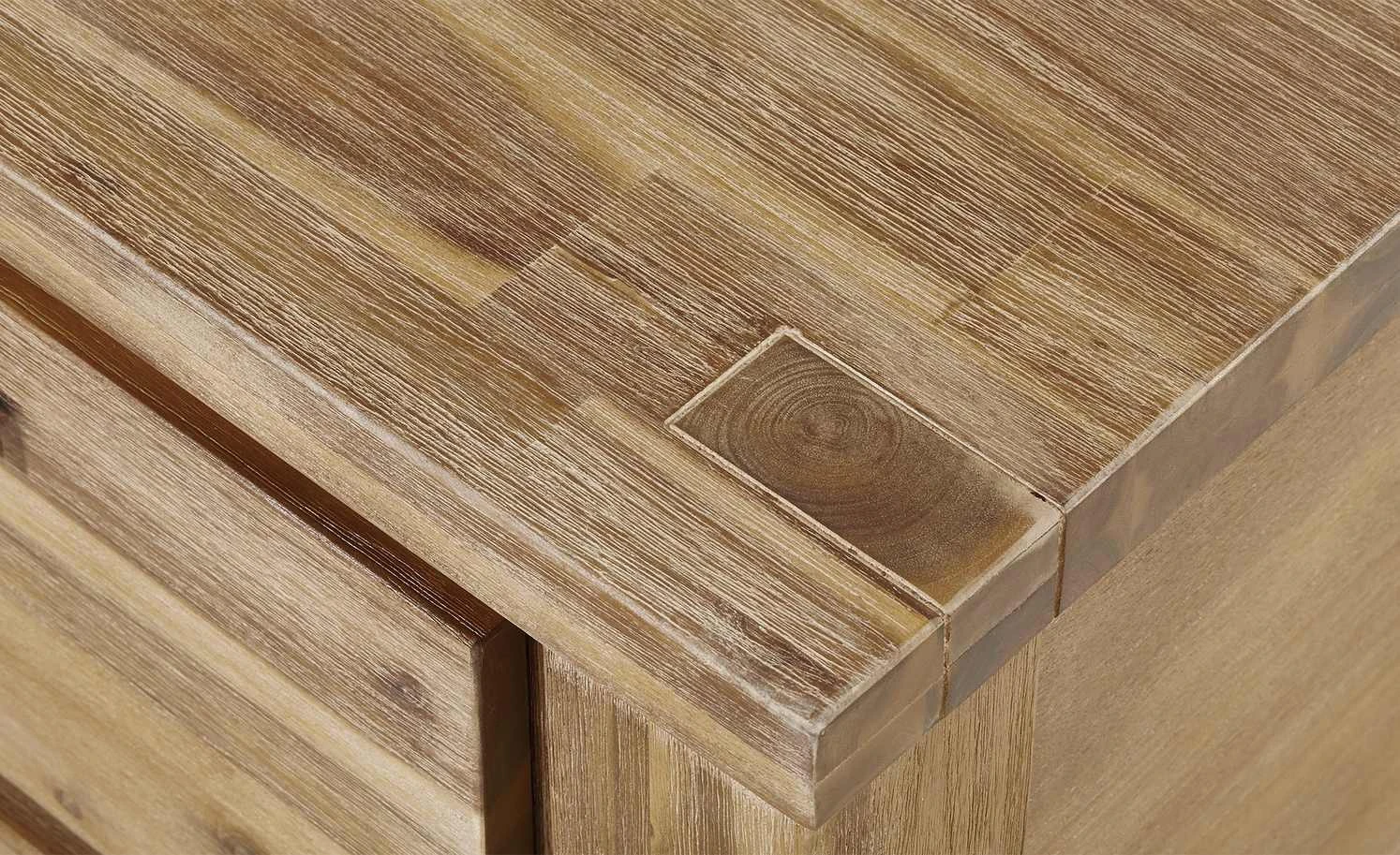 - Mehr zum Material: Seiten aus Akazie furniert sandfarben gebeizt und lackiert, Tischplatte und Fronten aus Akazie massiv sandfarben gebeizt und lackiert