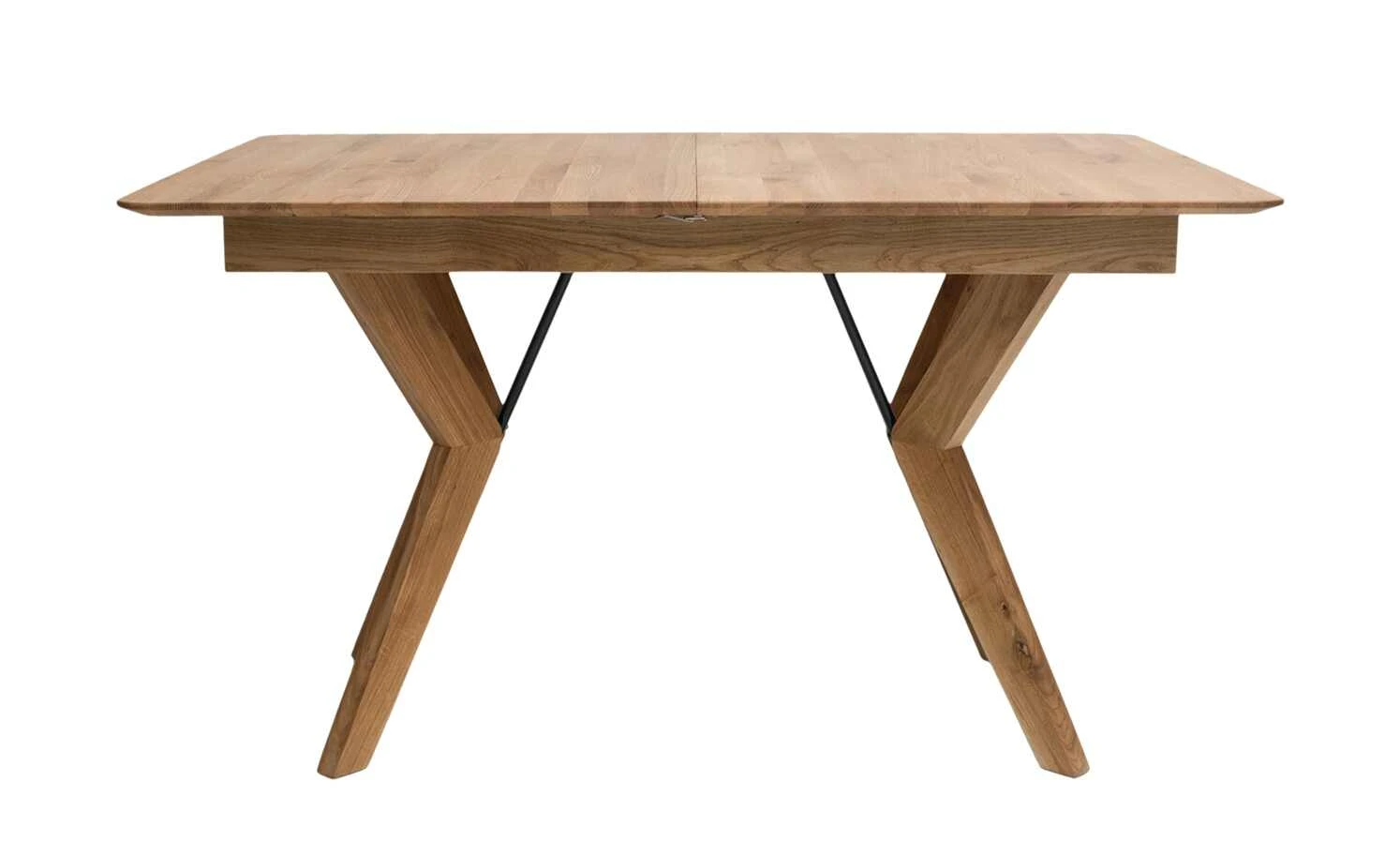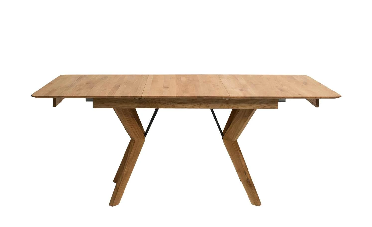 - Mehr zum Material: Tischplatte und Gestell aus Eiche rustik massiv gespachtelt und geschliffen, Gestell-Applikation aus Metall in Schwarz