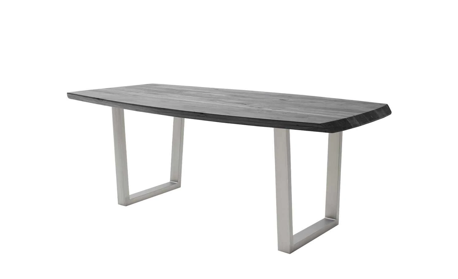 Woodford Kufentisch massiv Calotta | 180|cm Grau sandgestrahlt Trapez-Form Edelstahl