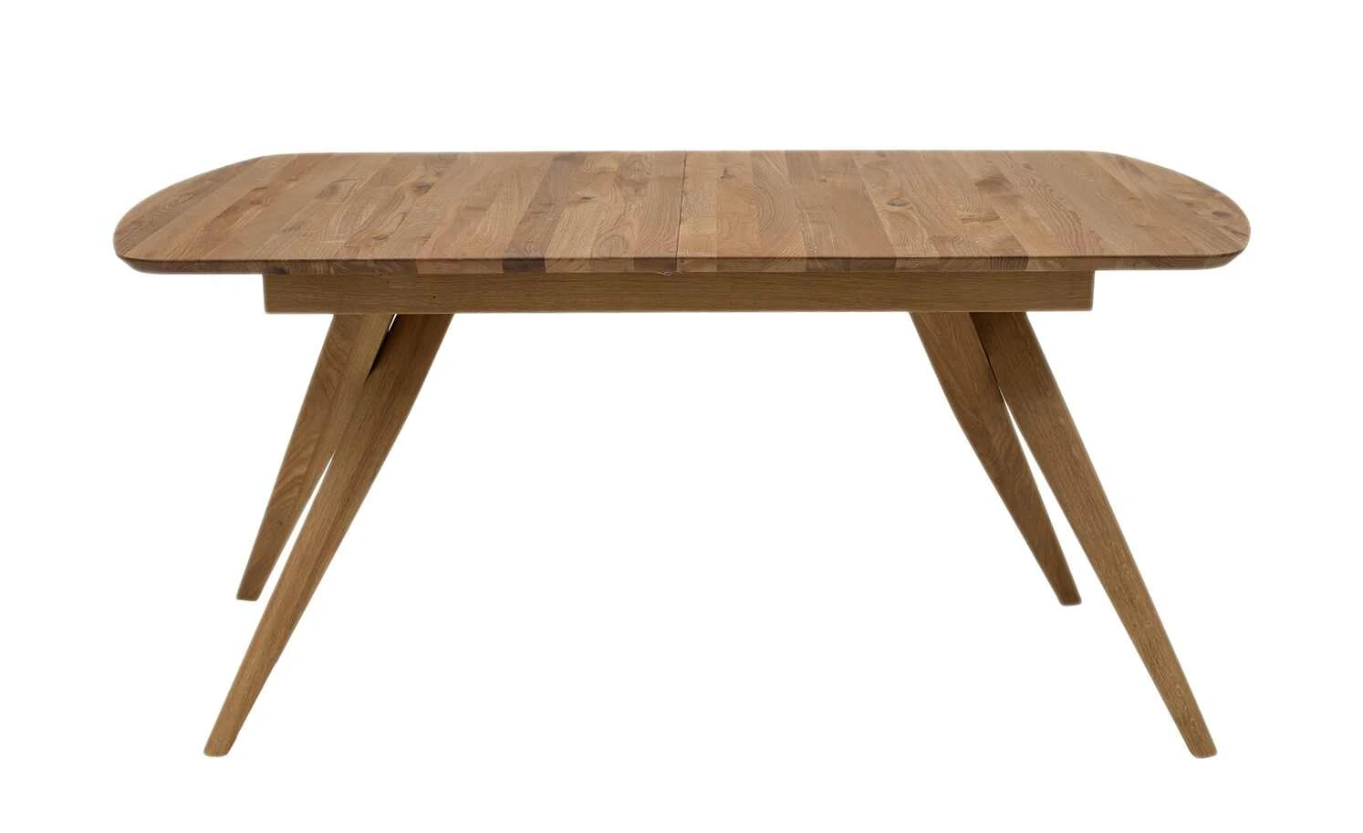 - Mehr zur Ausführung: mit gekreuzten Tischbeinen, Tischplatte mit abgerundeten Ecken und durchgehender Lamelle
