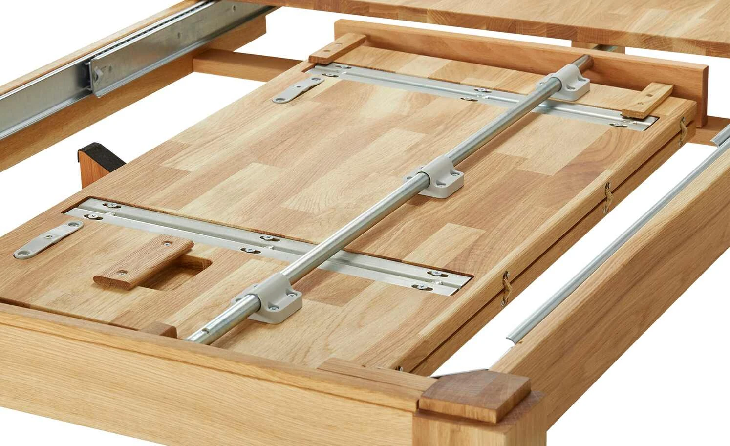 - Mehr zu Ausstattung / Funktion: Butterfly-Auszug mit einer innenliegenden Klappeinlage ca. 80 cm, Verstecke Rollen im Tischfuß