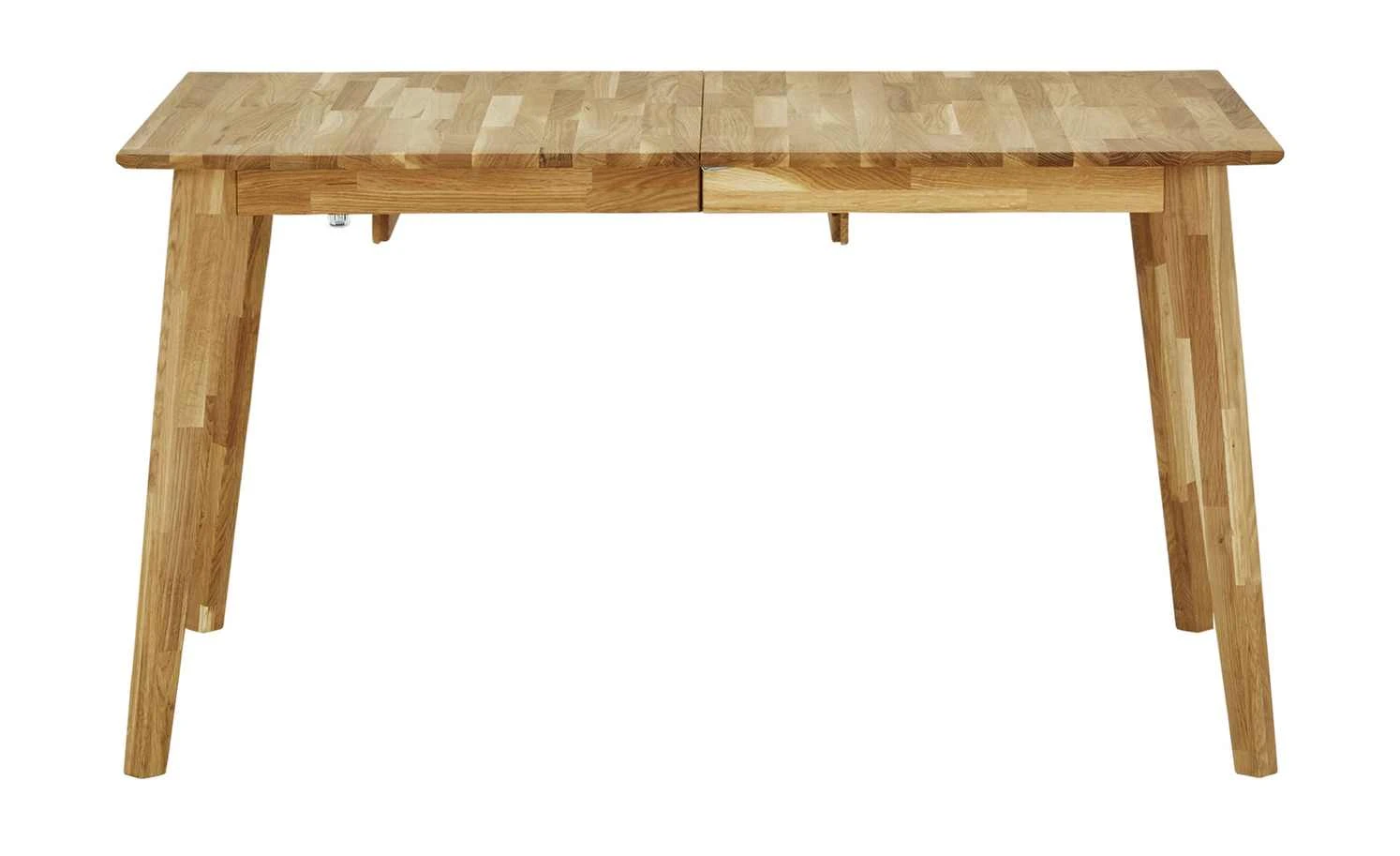 Skandinavisch reduziert, natürlich wohnlich und praktisch – das ist der Esstisch Myke. Er ist komplett aus massiver Wildeiche gefertigt. Ihr rustikaler Charme wird durch die sogenannte keilverzinkte Optik noch besser hervorgehoben. Myke kann mithilfe eines Mittelauszuges auf 185 Zentimeter verlängert werden. Je nach Länge der Tischplatte – also ausgezogen oder nicht – passen so also sechs bis acht Personen an den Tisch.